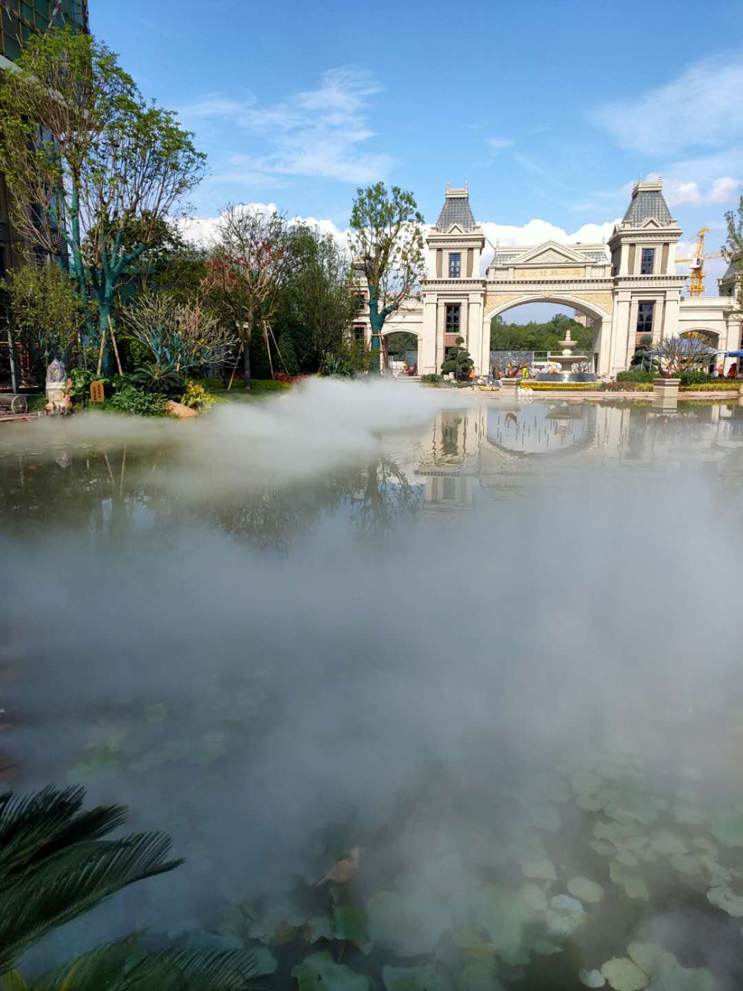 喷雾系统最最主要的组成部分是主机系统,主机由四部分构成:水处理系统,高压系统,自动反冲设备和自动控制系统。该水处理系统用到钙和镁离子软化水源,并对水中的悬浮固体开展灭菌和去除,保证整个喷雾系统畅通。细微的粒子汇聚在空气中,形成了古怪的白色云朵状景观,类似于自然雾的功效,就像“雾林”。控制系统和反冲设备调节并自动保护每个工作环节。